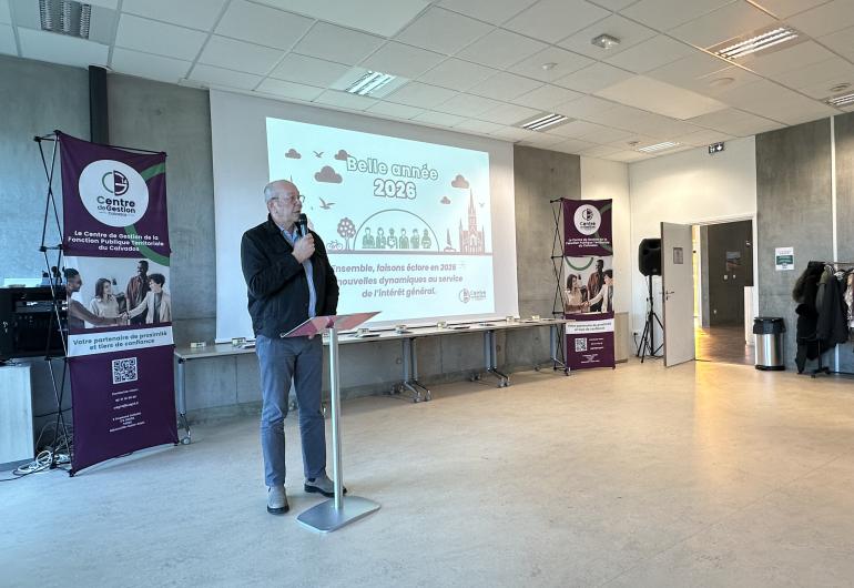Le 21 janvier 2026, 70 personnes - élus du conseil d'administration, agents du CDG14, représentants institutionnels et partenaires extérieurs - se sont réunies à l’occasion de la cérémonie des vœux du CDG14.