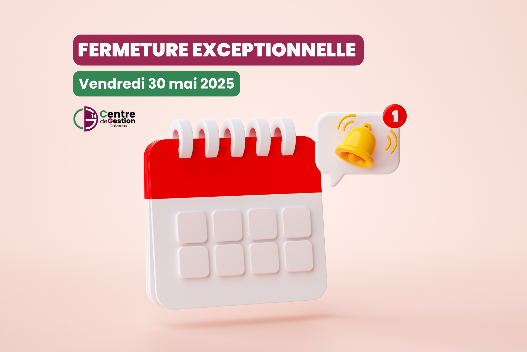 Le CDG 14 vous informe que l’accueil physique ainsi que le standard téléphonique seront exceptionnellement fermés le vendredi 30 mai 2025.